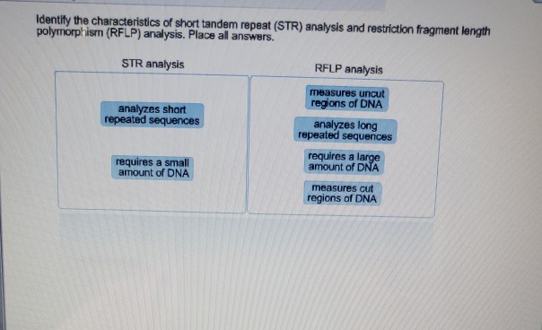 Rflp, or restriction fragment length polymorphism, is a molecular biological technique used to compare dna from two samples. Rflp involves unique combination of sequences inherited from the parents of an individual. Electrophoresis is then used to separate the strands according to their length. The tag is used to limit the search to articles for which major subjects are represented by terms included in the nlm mesh database. Quizlet is the easiest way to study, practise and master what you're learning.